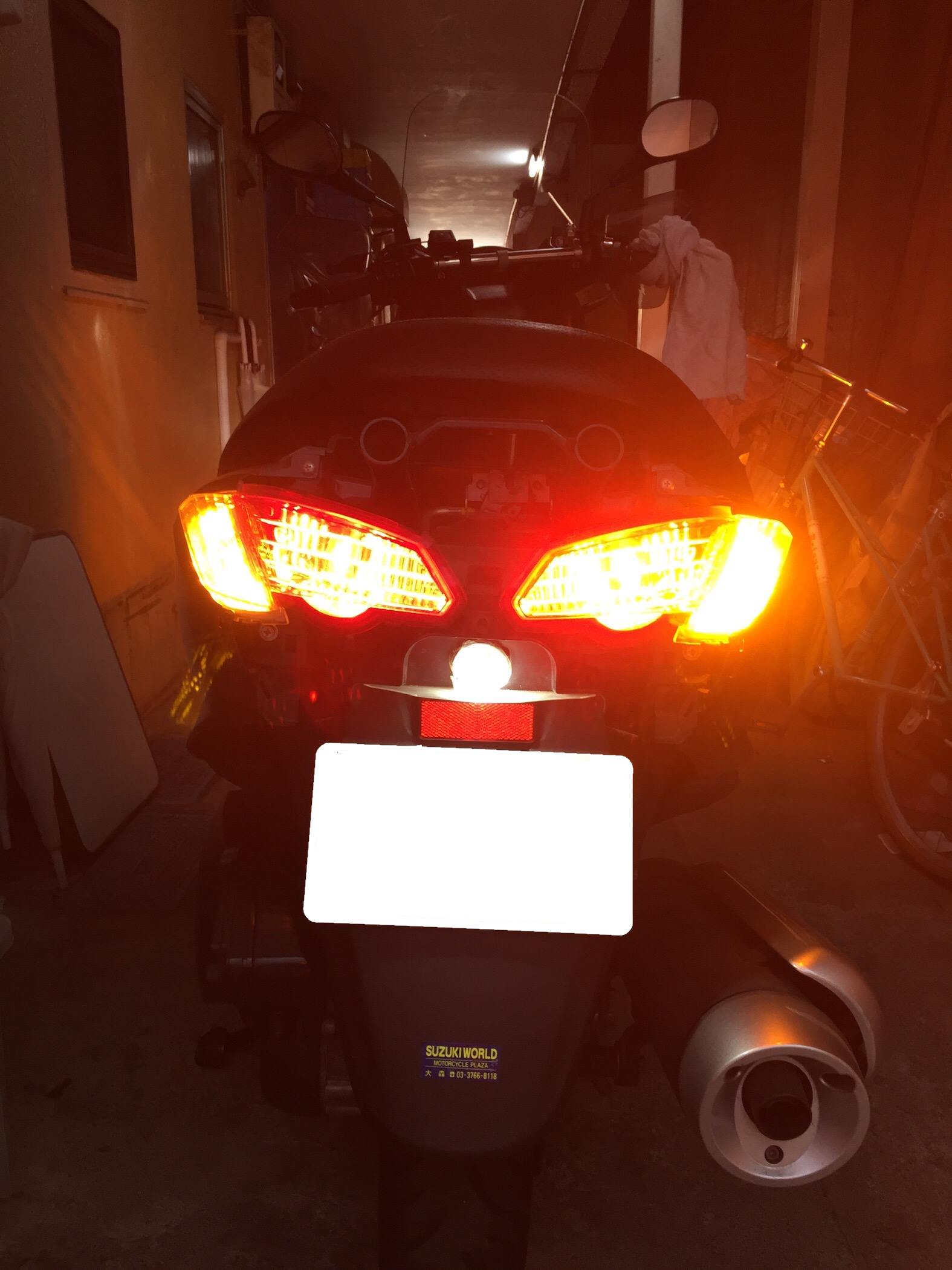 ナンバー灯は、以前購入したT10 9灯 フレキシブルバルブになります。純正のナンバー灯キャップに干渉したので車体側に少し手を加えました。こちらの商品も明るくて非常に満足してます!